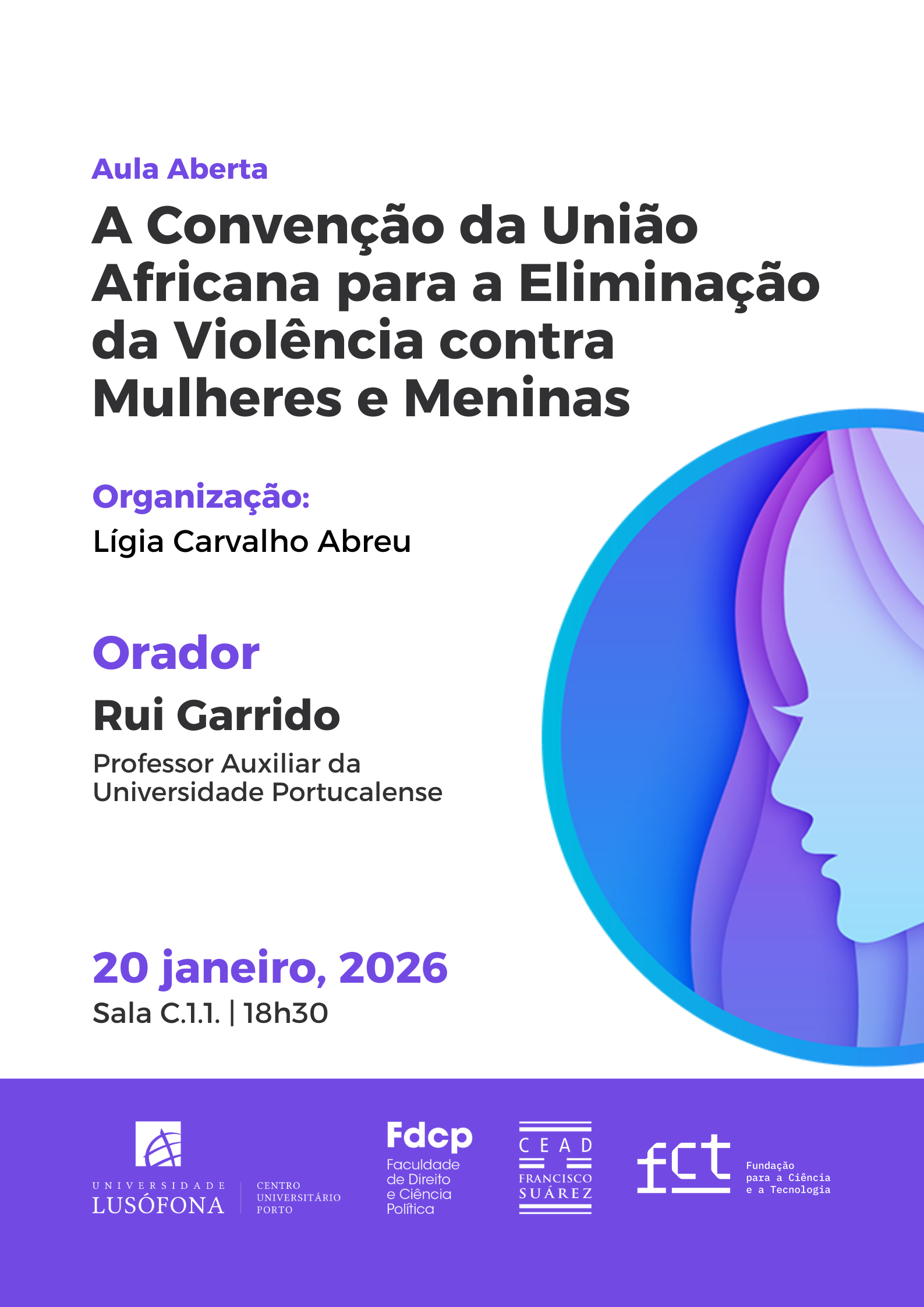 O CEAD convida toda a comunidade académica e o público interessado a participar na Aula Aberta “A Convenção da União Africana para a Eliminação da Violência contra Mulheres e Meninas”, que terá lugar no dia 20 de janeiro de 2026, às 18h30, na Sala C.1.1.