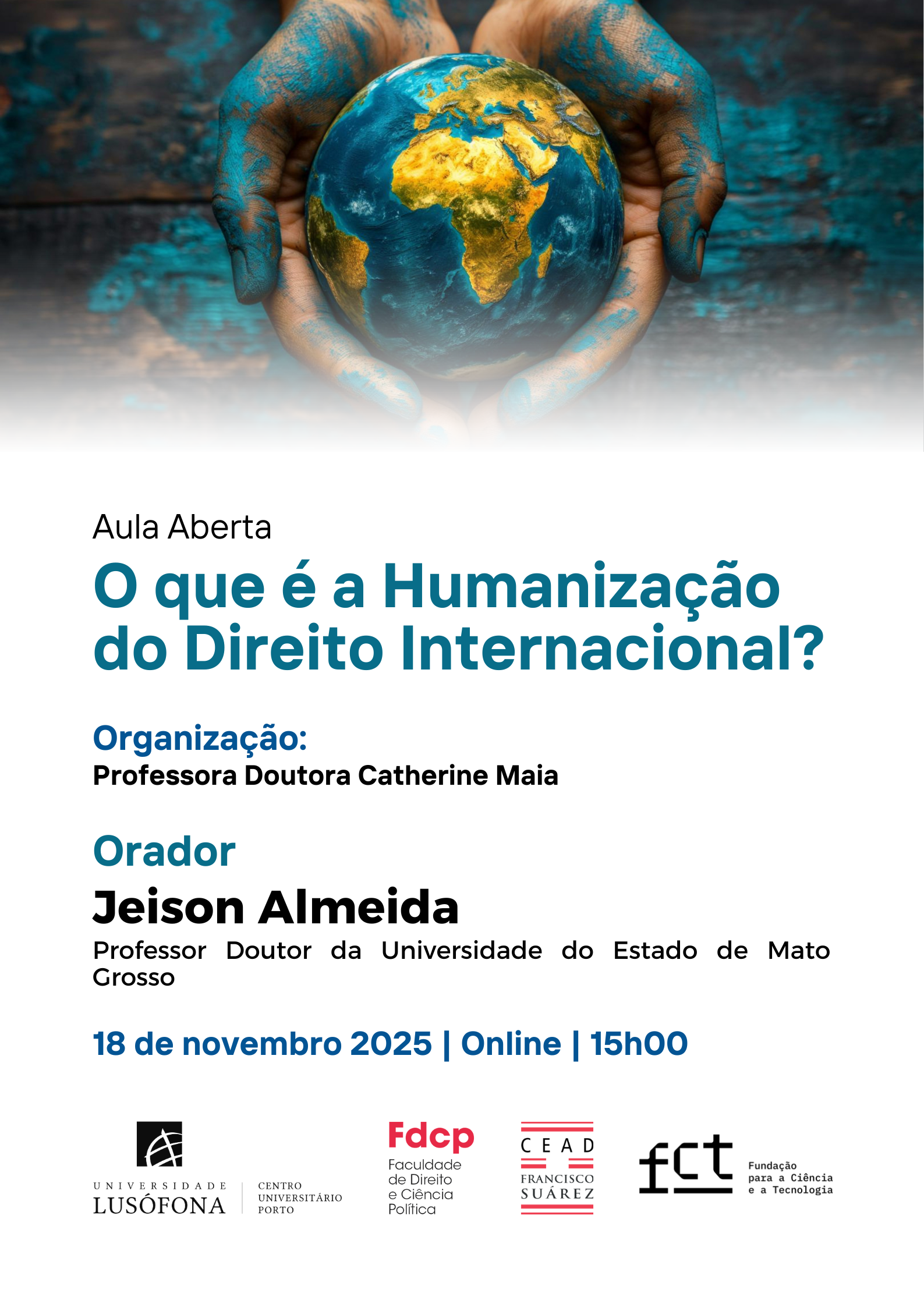 O CEAD convida toda a comunidade académica e o público interessado a participar da Aula Aberta “O que é a humanização do Direito Internacional?”, que se realizará no dia 18 de novembro, às 15h00 (horário de Lisboa), em formato online.